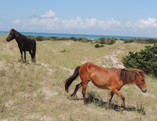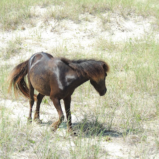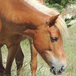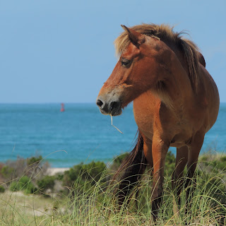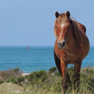 My day started on an early ferry ride out to Shackleford Island from the quaint little town of Beaufort, North Carolina. The island is part of the National Park Service of North Carolina, and home to about 100 wild ponies. As our boat came closer to the island, I took note of the landscape. Typical island - not a lot of trees, hilly, lots of sand.
